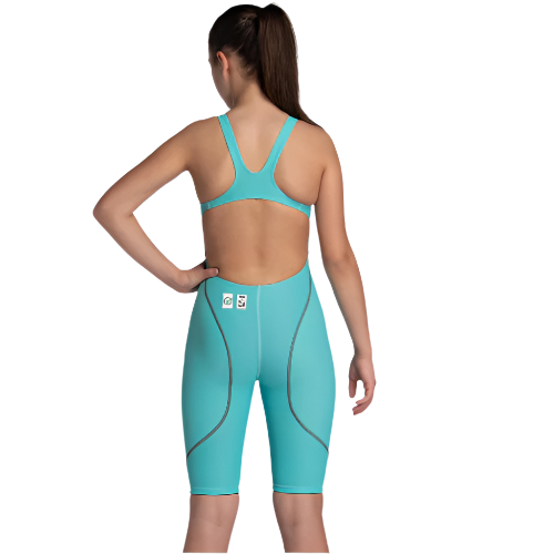 Our new Girls’ Open Back Powerskin ST Next is the first-ever competitive tech suit to include recycled fabric in its design. Over 60% of the material used comes from pre and post-consumer textile waste that would have otherwise ended up in landfills. This updated version of the ST is more durable and 20% lighter, absorbing less water and reducing drag. Engineered to offer the perfect balance of compression and ease of use, our World Aquatics-approved kneeskin has flatlock seams and reinforced straps for comfort and support while racing. The perfect tech suit for the next generation of swimmers.