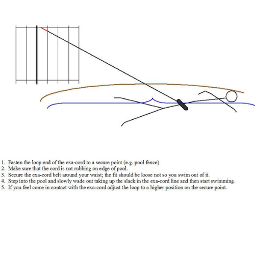 Eyeline Exa Cords Swim Pool Training Cords are designed for push-off drills, in-place resisted swimming, resisted walking, running and other in-water resistance drills. Belts feature a 5cm adjustable waist belt with an NBR Rubber Pad attached to a tubular latex cord. A mounting loop is attached to the end of the tubing to mount in a pool.