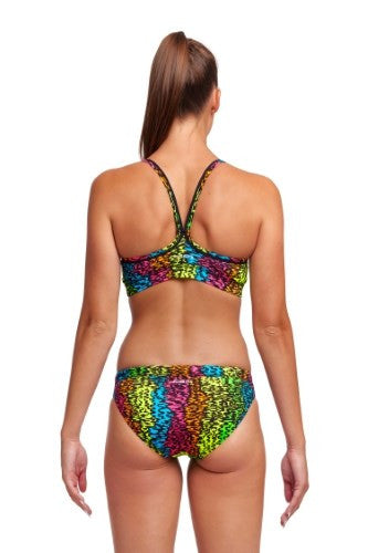 With a firm fitting racer back, double bind shoulder straps plus a wide under bust elastic, I promise to keep you secure and comfortable throughout your swim. I’m perfect for regular swimming and wearing under a wetsuit if you’re open water swimming. I’m sold as a separate so you can mix and match me across sizes and prints with your fave Funkita brief plus I’m made with all the care and love in production that makes me proud to be Funkita. ECO C-INFINITY is the same superior quality polyester construction that you’ve come to trust from our C-Infinity fabric, but manufactured from end-of-life plastic water bottles. Providing 100% chlorine resistance and exceptional colours, ECO C-INFINITY gives a new life to waste, reducing our environmental impact and keeping you swimming day in and day out in the brightest swimwear on the market.