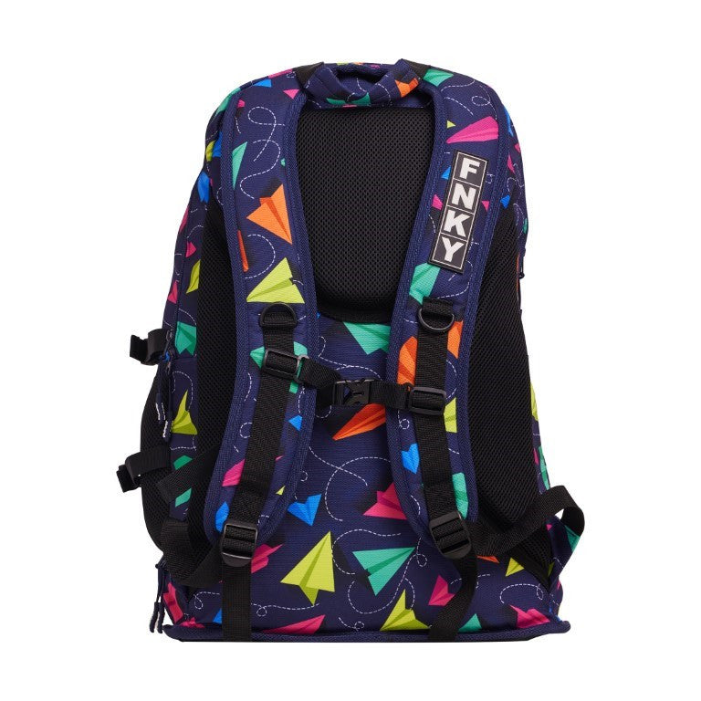 - Comfortable padded back panel and shoulder straps with chest strap for postural support,