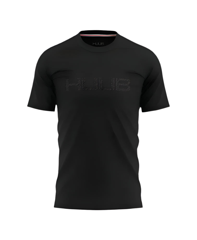 HUUB Carbon T-Shirt in Black cotton, featuring logo in carbon design.