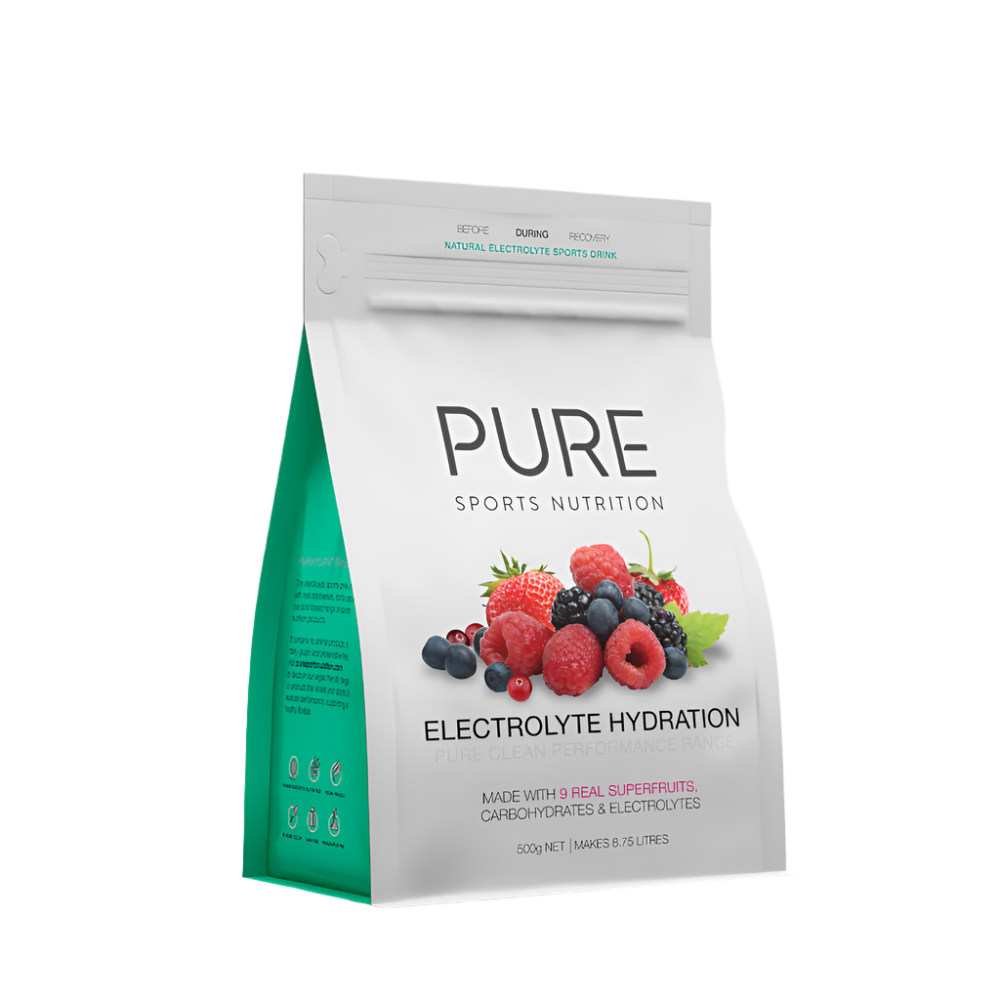 PURE Electrolyte Hydration is a premium natural isotonic electrolyte drink base using real freeze dried fruit, carbohydrates and electrolytes. It is best used during exercising periods over one hour or high-intensity exercise sessions.