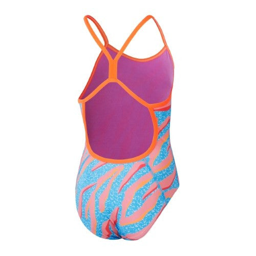 Roar through drill sets and pounce on main session times wearing our eye-catching new ‘Space Tiger’ print Vback swimsuit in colourful blue, red and pink. A go-to for junior training, the simple Vback design with a modest cut is comfortable to train in and provides maximum freedom of movement.
