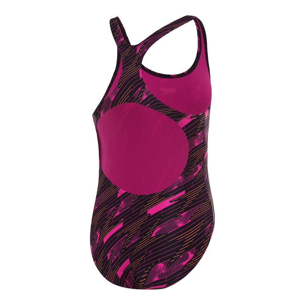 Speedo - Girls - Hyperboom Allover Medalist One Piece - Black Base/Nectarine & Electric Pink Recolour