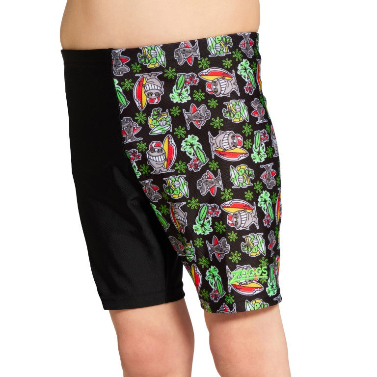 Zoggs Finzilla Midi Jammer features super cool shark and turtle surfers characters on the left leg - how many surfboards can you spot? These highly chlorine resistant, sustainable Midi Jammers are bound to be a hit this season.