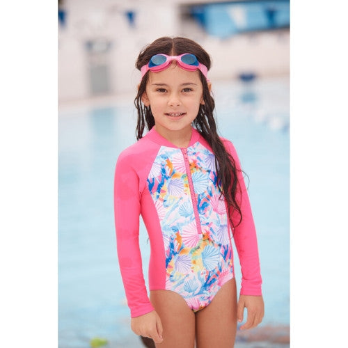 Brand new style! Introducing Zoggs Crazy Clams Paddle Suit. This vibrant pink paddle suit features Zoggs bright and beautiful crazy clams print.