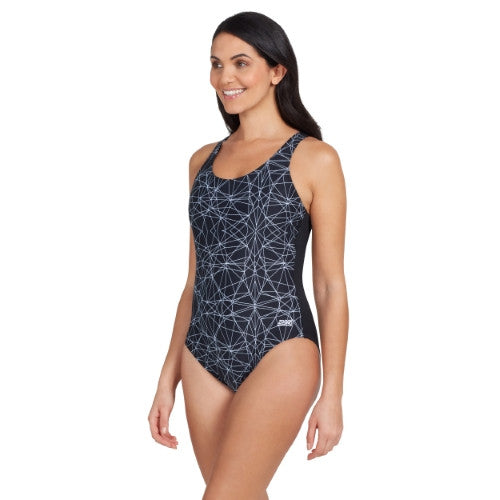 Look fast in and out of the water in our new seasonal essential the Warrego Powerback One Piece swimsuit. Designed with comfort and fit in mind this striking Black & White One Piece features wide straps, an open back and comfortable shelf bra, plus it is made from our Sustainable Eco Friendly Ecolast+™ fabrication. Not only is it good the environment, but it is also Chlorine Proof, so your swimsuit will last the distance.